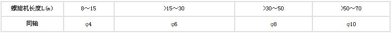 6.螺旋機各中間懸吊應(yīng)軸承應(yīng)可靠地固定在機殼吊耳上,與相鄰螺旋聯(lián)接后螺旋轉(zhuǎn)動均勻,不得有被卡住現(xiàn)象。安裝時可在吊軸承底座與機殼吊耳間加調(diào)整墊片以保證各吊軸同軸,安裝后螺旋體軸線的同軸度應(yīng)符合下表規(guī)定。