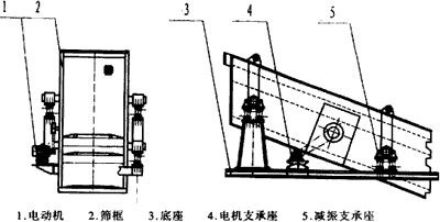 YZ圓振動篩由塊偏心式激振器、篩箱、電動機、底座及支承裝置組成。篩面傾角20°。